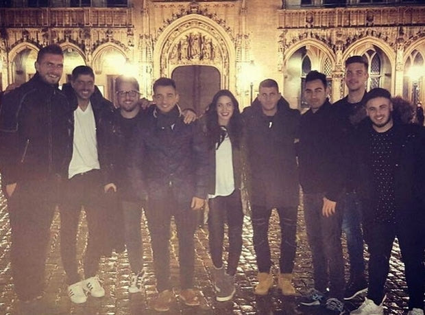 Έξι Έλληνες στις Βρυξέλλες, την Κυριακή το βράδυ. Ο Θανάσης Παπάζογλου και ο Μιχάλης Σηφάκης της Κόρτραϊκ, ο Στέργος Μαρίνος και ο Σωτήρης Νίνης της Σαρλερουά, ο Νίκος Καρέλης της Γκενκ και ο Κώστας Ρουγκάλας της Λόιβεν βρέθηκαν σε κεντρική πλατεία των Βρυξελλών.