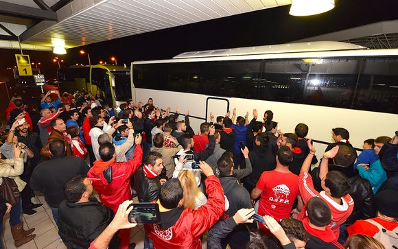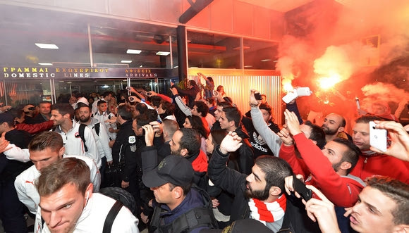 Την αποστολή του Ολυμπιακού στο αεροδρόμιο της Κέρκυρας υποδέχθηκαν περίπου 200 οπαδοί της ομάδας από τους τοπικούς συνδέσμους.