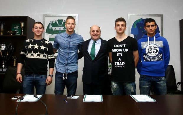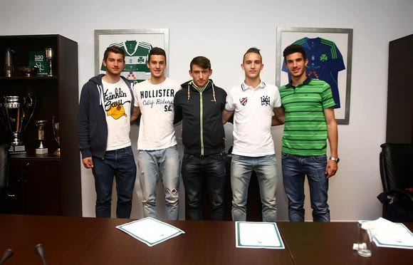 Έτσι και έγινε την Πέμπτη το πρωί με τους νεαρούς ποδοσφαιριστές σε δυο γκρουπ, το πρώτο αποτελούμενο από τους Στάικο, Γκέκα, Λάμπρου και Μυρθιανό και το δεύτερο από τους Κότσαρη, Νιούμαν, Τζανουλίνο, Αγγελόπουλο και Μαλντίν να μεταβαίνουν στα γραφεία της πράσινης ΠΑΕ και να βάζουν την υπογραφή τους σε συμβόλαια διάρκειας 2,5 ετών με τον Παναθηναϊκό.