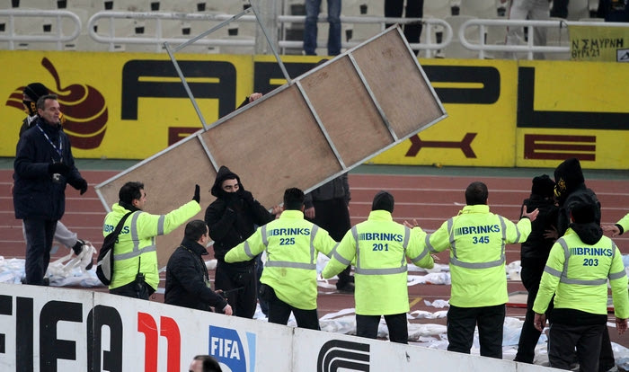 Συγκεκριμένα, αφού οι παίκτες των δύο ομάδων αποσύρθηκαν στα αποδυτήρια, μερίδα οπαδών τα έβαλε με διμοιρία των ΜΑΤ, κυνηγώντας τους μέχρι το στίβο του γηπέδου.