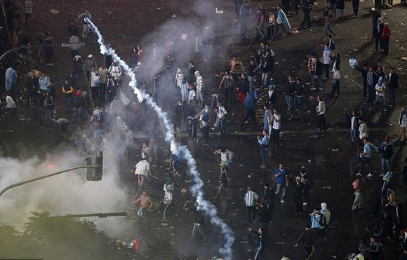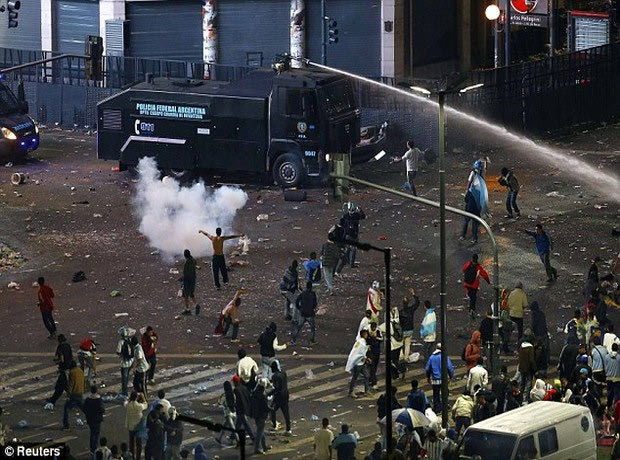 Οι Αργεντίνοι είχαν μαζευτεί στην κεντρική πλατεία του Μπουένος Άιρες για να παρακολουθήσουν τον τελικό αλλά η συγκέντρωση κατέληξε σε σοβαρά επεισόδια. Τα ΜΜΕ της Αργεντινής κάνουν λόγο για πάνω από 20 τραυματίες.