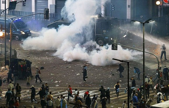 Η αστυνομία έκανε χρήση χημικών και νερού για να διώξει τους ταραξίες που προσπάθησαν να καταστρέψουν οτιδήποτε έβρισκαν μπροστά τους.