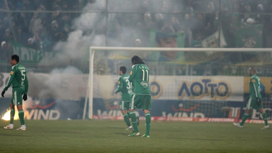 Με τη λήξη της αναμέτρησης οι φίλοι του Παναθηναϊκού πέταξαν καπνογόνα στους ποδοσφαιριστές της ομάδας τους, αφού είναι ιδιαίτερα ενοχλημένοι από την κάκιστη αγωνιστική εικόνα που παρουσιάζουν.