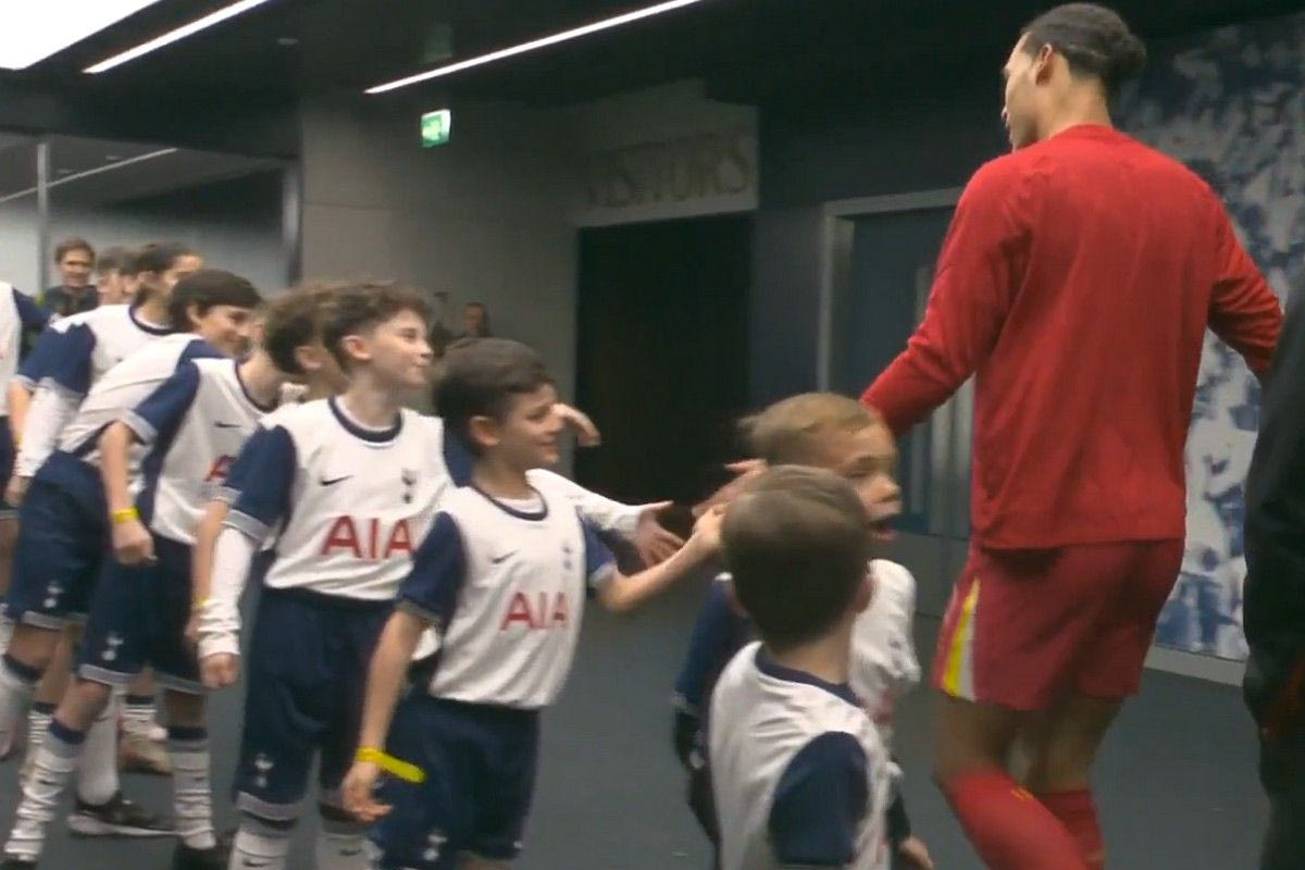 “Φαν Ντάικ έλα στην Τότεναμ, δεν έχουμε καλούς αμυντικούς αυτή τη στιγμή”, φώναξε το παιδί στον Ολλανδό διεθνή στόπερ, που από την πλευρά του έκανε “high-five” με όλα τα παιδιά-συνοδούς με τη φανέλα της Τότεναμ που βρίσκονταν εκείνη τη στιγμή στον διάδρομο των αποδυτηρίων.