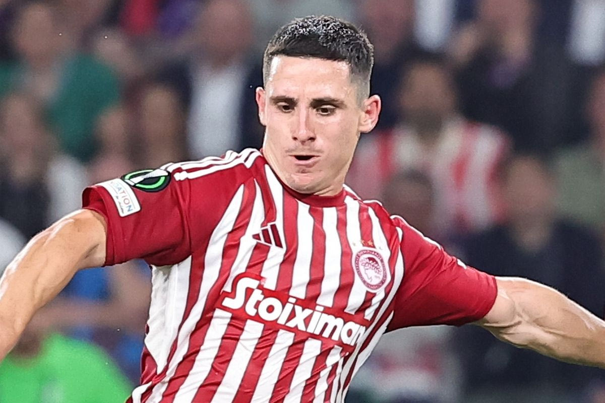 Ο Ντάνιελ Ποντένσε του Ολυμπιακού σε στιγμιότυπο κόντρα στη Φιορεντίνα για τον τελικό του Europa Conference League 2024-2025 στην OPAP Arena | Τετάρτη 29 Μαΐου 2024