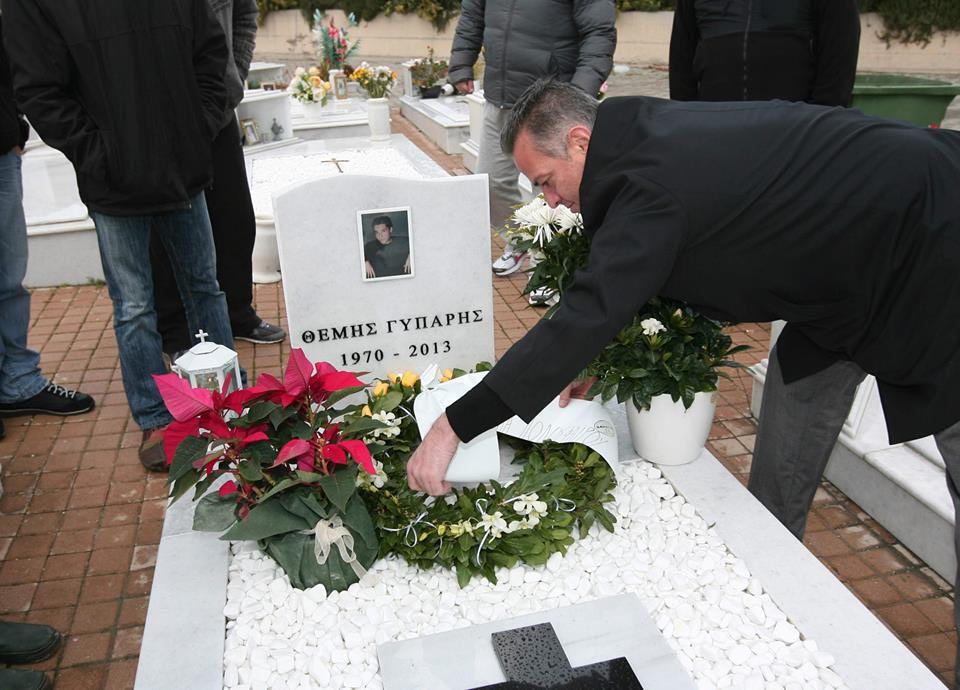 Οι Βασίλης Δημητριάδης, Μιχάλης Παυλής, Νίκος Γεωργέας και Δημήτρης Γροντής επισκέφτηκαν πριν από λίγο την τελευταία κατοικία του αρχηγού της Originalστην Κρήτη και απέτισαν φόρο τιμής αφήνοντας λουλούδια στο νεκροταφείο του Ηρακλείου.