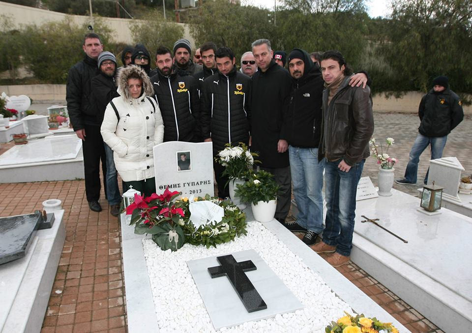 Αντιπροσωπεία ποδοσφαιριστών της Ένωσης, συνοδευόμενοι από τον Γενικό Αρχηγό της ΑΕΚ, τίμησαν τον Θέμη στην τελευταία του κατοικία (pics).
