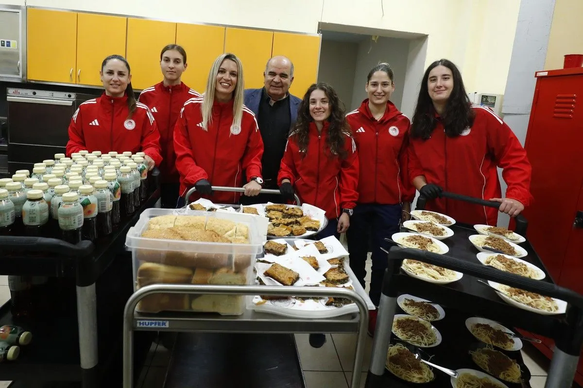 Οι αθλήτριες και το προπονητικό επιτελείο του Ολυμπιακού, αφού μαγείρεψαν, σέρβιραν το μεσημεριανό γεύμα στους ωφελούμενους της Δομής, προσφέροντάς τους όχι μόνο φαγητό, αλλά και ένα μεγάλο χαμόγελο.