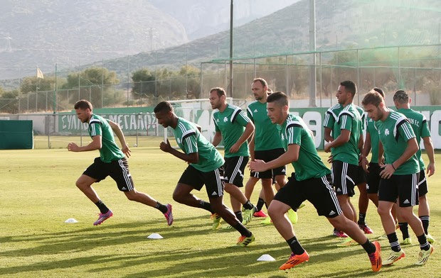 Το πρόγραμμα των «πράσινων» περιλάμβανε αρχικά ζέσταμα, στη συνέχεια ασκήσεις πέντε εναντίον δυο και ασκήσεις κυκλοφορίας της μπάλας και τέλος οικογενειακό δίτερμα.