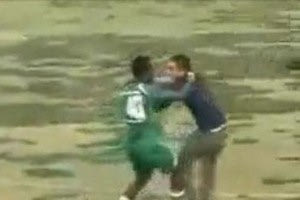 Σε αγώνα για τη δεύτερη κατηγορία του πρωταθλήματος μεταξύ της Payam Khorasan και της Tarbiat Mashhad που έληξε με 1-0 υπέρ της δεύτερης, “όλα τα λεφτά” ήταν το τρίτο ημίχρονο, με τον Καμερουνέζο άσο της ηττημένης Τζον Νεγκόντι να γίνεται “ταύρος εν υαλοπωλείο” και να επιτίθεται σε όποιον βρισκόταν στο δρόμο του με κάθε δυνατό τρόπο.