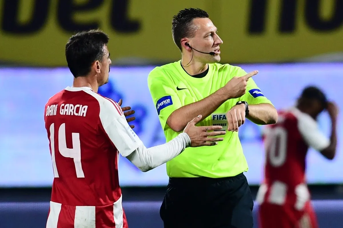 Σωστά απέβαλε τον Γκαρθία αλλά σε αντίστοιχο επικίνδυνο και βίαιο μαρκάρισμα στον αχίλλειο του Τσικίνιο (78ο λεπτό) υπέδειξε… πλεονέκτημα στο πλάγιο άουτ και φυσικά δεν τιμώρησε τον ποδοσφαιριστή του αντιπάλου με κάρτα.