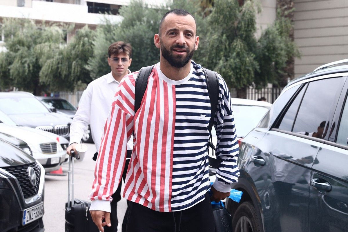 Ανάμεσα στους ποδοσφαιριστές που τράβηξαν τα βλέμματα κατά την άφιξή τους ήταν και ο Μανώλης Σιώπης, ο οποίος εμφανίστηκε με ριγέ μπλούζα σε κόκκινο, μαύρο και λευκό, συνδυασμένη με μαύρο παντελόνι και backpack.