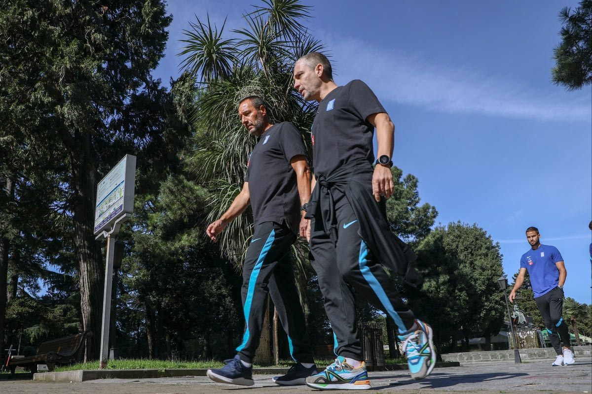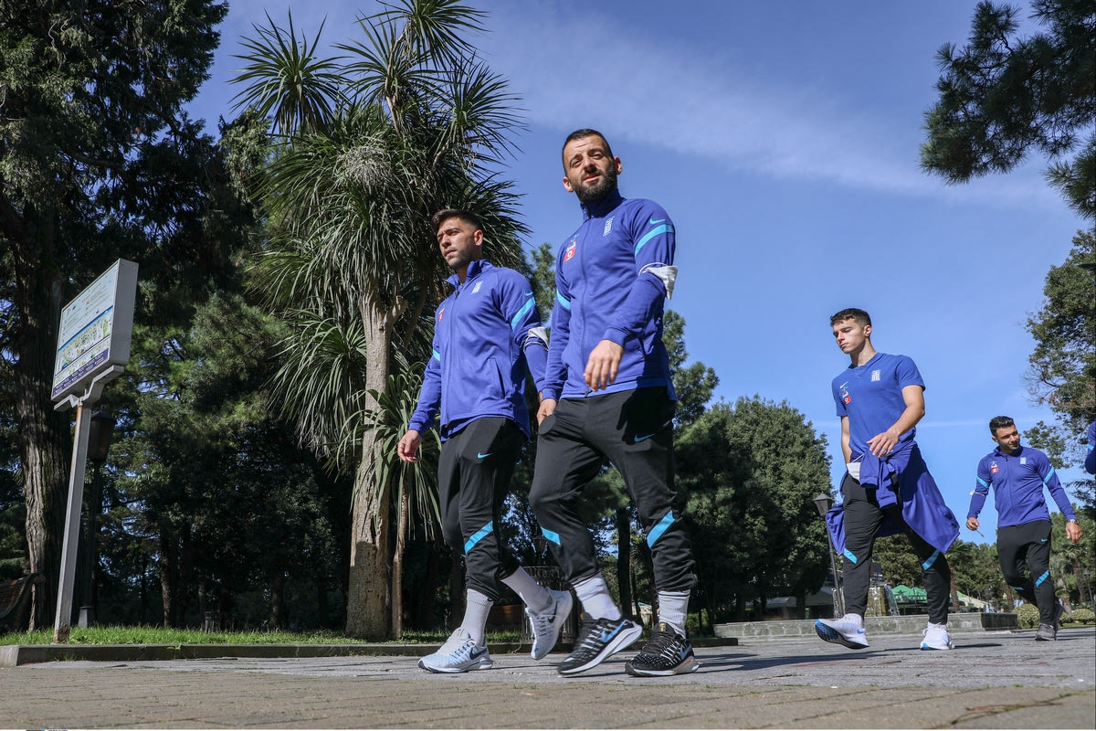 Οι παίκτες της Εθνικής Ελλάδας έκαναν το πρωί του Σαββάτου την καθιερωμένη βόλτα για χαλάρωμα ενόψει της αποψινής (19:00) μάχης με την Γεωργία στο Μπατούμι.