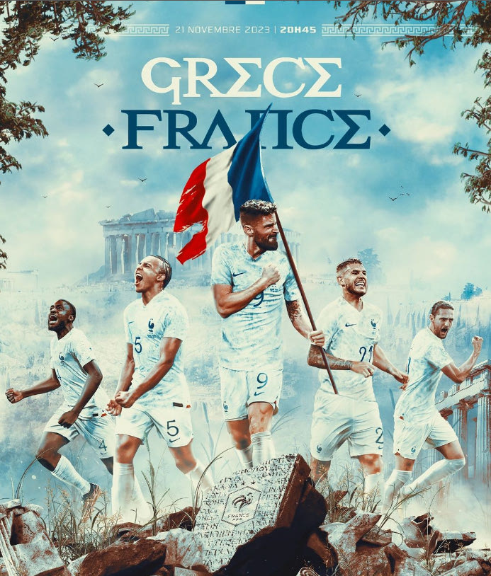 Μέσω ενός εκπληκτικού εικαστικού η επίσημη σελίδα της εθνικής Γαλλίας στα social media προλογίζει το ματς κόντρα στην Ελλάδα (21/11, 21:45), στο πλαίσιο της τελευταίας αγωνιστικής των προκριματικών του Euro 2024.