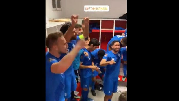 Πάρτι στήθηκε στα αποδυτήρια της Εθνικής με τους παίκτες της Ελλάδας να τραγουδούν έπειτα από την ισοπαλία κόντρα στην Ισπανία με σκορ 1-1 στη Γρανάδα.