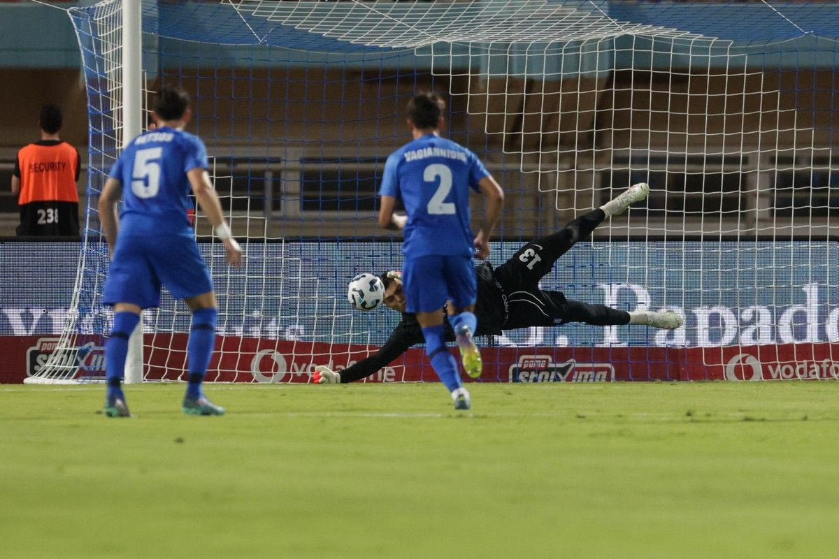 Ο Χρήστος Μανδάς υπέπεσε σε πέναλτι στο 11′, όμως στη συνέχεια με τρομερή διπλή απόκρουση διόρθωσε το αρχικό του λάθος και κράτησε το μηδέν για την Εθνική Ελλάδας.