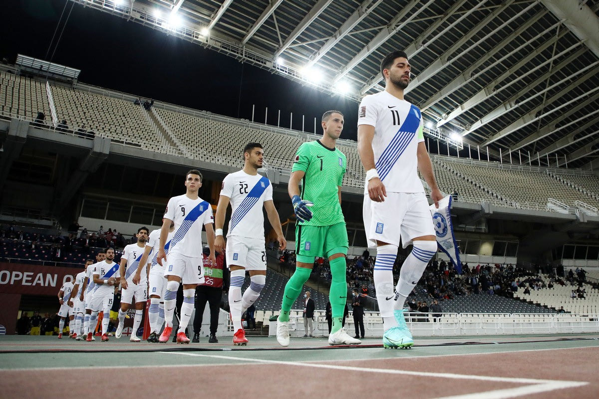 Παίκτες της Ελλάδας σε στιγμιότυπο πριν από την αναμέτρηση με τη Σουηδία για τον 2ο προκριματικό όμιλο της ευρωπαϊκής ζώνης του Παγκοσμίου Κυπέλλου 2022 στο Ολυμπιακό Στάδιο | Τετάρτη 8 Σεπτεμβρίου 2021 INTIME SPORTS