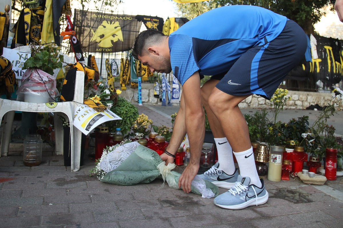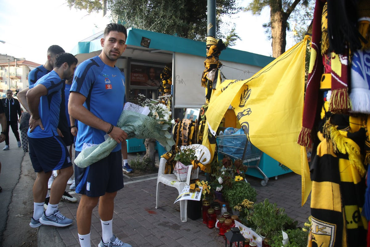 Αντιπροσωπεία των παικτών της Εθνικής Ελλάδας και ο Γκουστάβο Πογέτ πήγαν στο σημείο που δολοφονήθηκε ο φίλος της ΑΕΚ, Μιχάλης Κατσούρης.