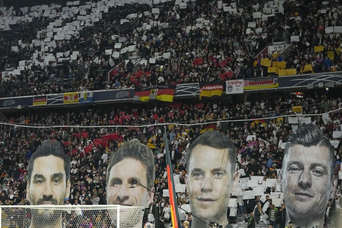 Κορεό στις εξέδρες της "Αλιάντς Αρίνα" για τους Κρόος, Νόιερ, Μίλερ και Γκιουντογκάν που είπαν αντίο στην εθνική Γερμανίας | 14 Οκτωβρίου 2024