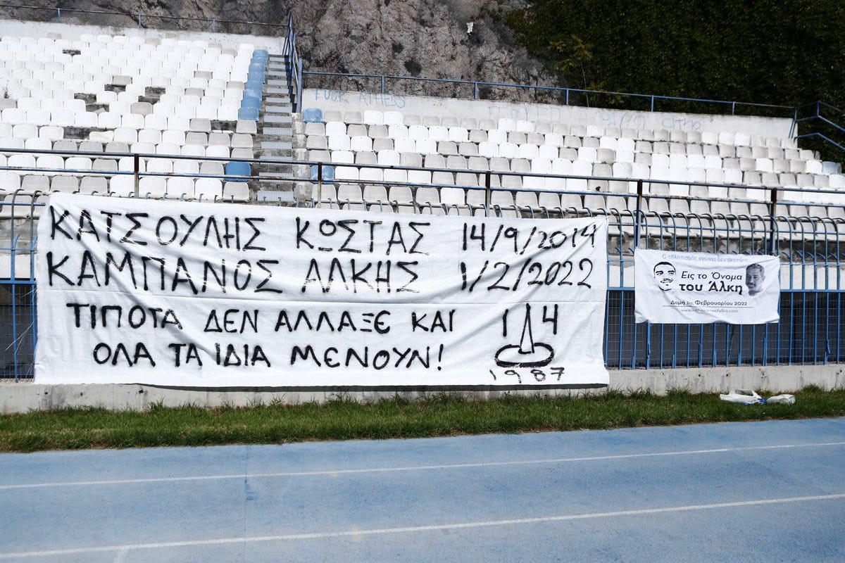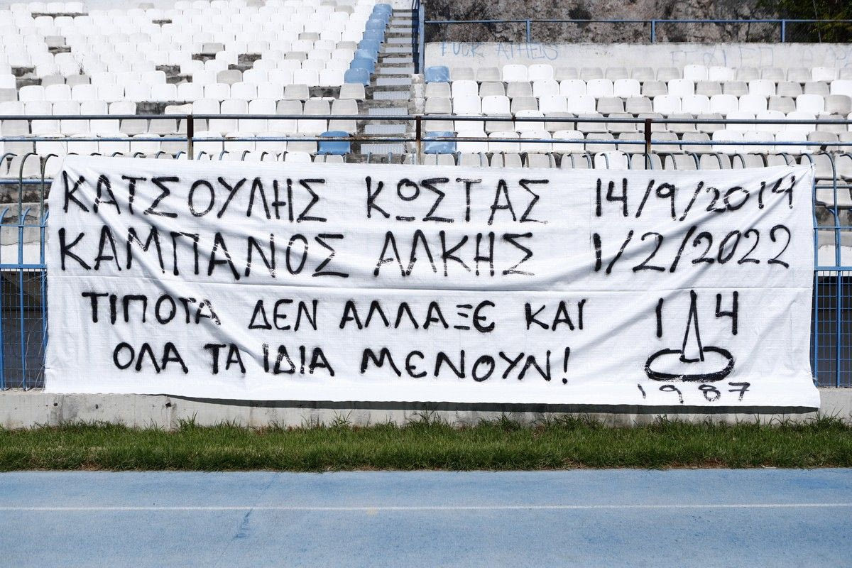 Τα δύο πανό που βρίσκονταν στο γήπεδο Eurokinissi Sports