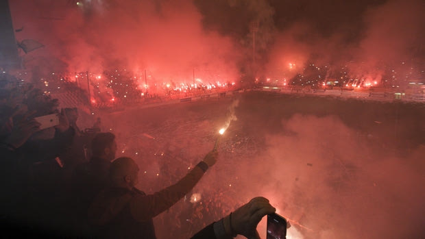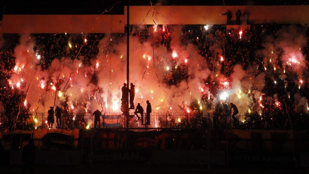 Οι εικόνες από drone πάνω από το “Κλεάνθης Βικελίδης” τη στιγμή που… φωτίστηκε από τα πυροτεχνήματα και τις φωτοβολίδες των φιλάθλων είναι αν μη τι άλλο εντυπωσιακές.
