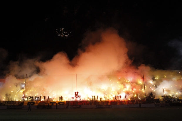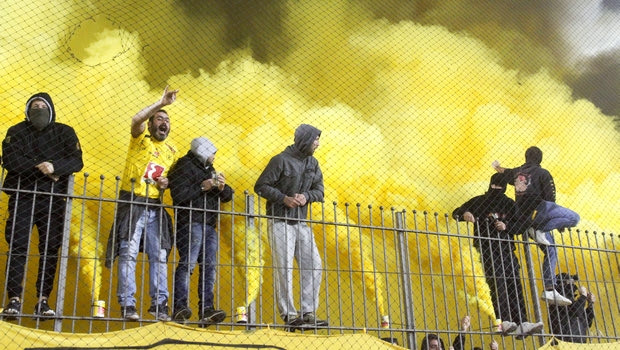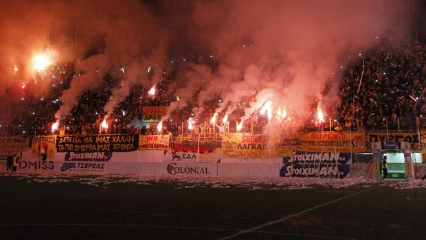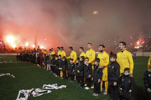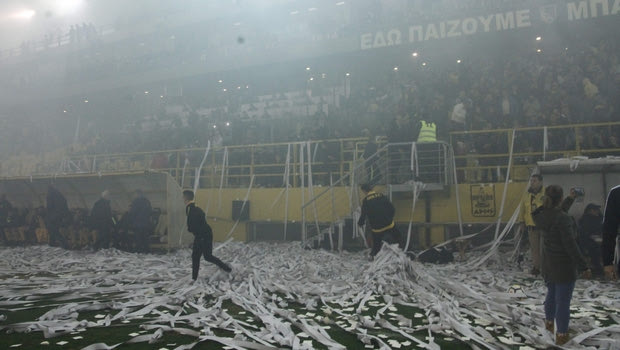 Η νύχτα έγινε… μέρα με την είσοδο των ομάδων στον αγωνιστικό χώρο. Οι περίπου 18.000 φίλαθλοι των “κιτρίνων” άναψαν βεγγαλικά και πυροτεχνήματα, ενώ δεν παρέλειψαν να πετάξουν χαρτάκια και ρολά στον αγωνιστικό χώρο.