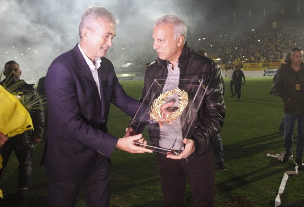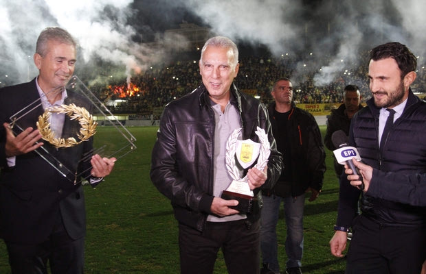 Η ατμόσφαιρα έγινε ακόμα πιο φαντασμαγορική, όταν έκανε την εμφάνισή του από τη φυσούνα ο… μεγαλύτερος όλων για την οικογένεια του Άρη και όχι μόνο, ο Νίκος Γκάλης, ο οποίος βραβεύτηκε πριν από τη σέντρα.