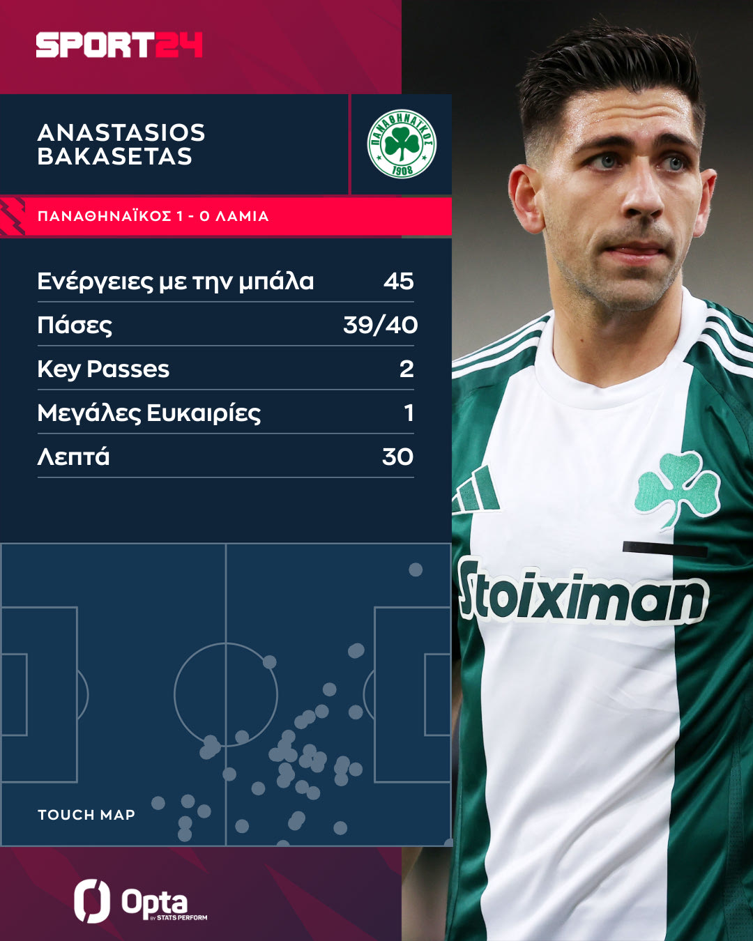 Ο Παναθηναϊκός νίκησε διά πυρός και σιδήρου τη Λαμία, με τον Τάσο Μπακασέτα να καθαρίζει για το τριφύλλι με την οβίδα και τη συνολική του παρουσία κόντρα στους Φθιωτούς.