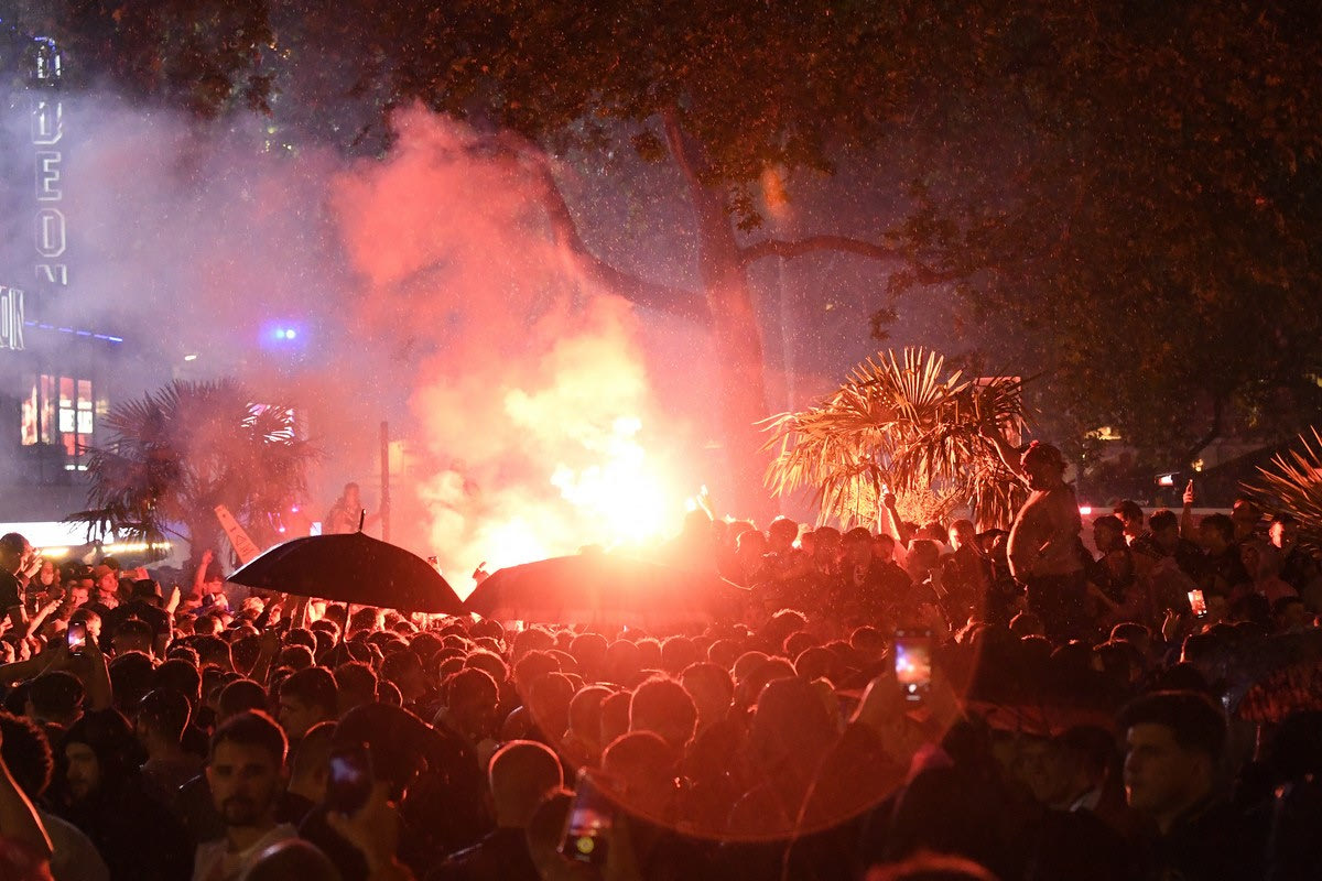 Έτσι, μετά το τέλος της αναμέτρησης έστησαν το δικό τους ξέφρενο πάρτι στη πλατεία Λέστερ του Λονδίνου το οποίο κράτησε για αρκετές ώρες.