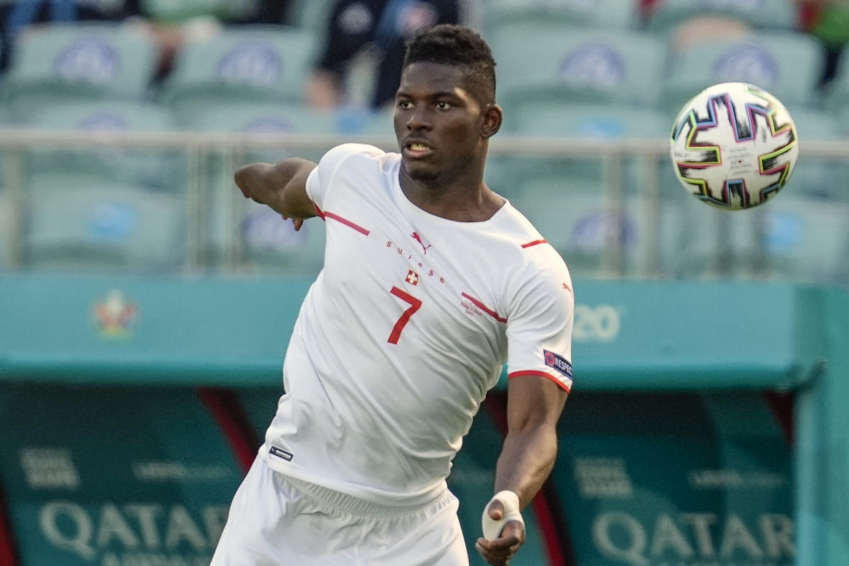 Ο Εμπολό κοντρολάρει την μπάλα στην αναμέτρηση της Ουαλίας με την Ελβετία