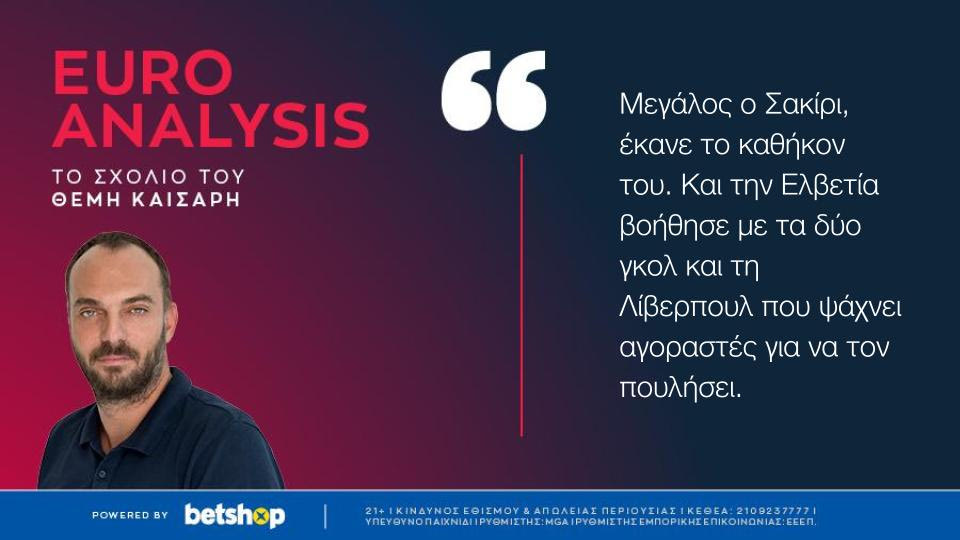 Ιστορία έγραψε και ο Τζερντάν Σακίρι. Ο 29χρονος μέσος της Λίβερπουλ βρήκε δύο φορές το δρόμο προς τα δίχτυα και ουσιαστικά δεν επέτρεψε στους Τούρκους να μπουν στη διεκδίκηση του ματς (στο φινάλε πήρε το βραβείο του MVP), με τον έμπειρο Ελβετό να μπαίνει μάλιστα σε ένα κλειστό ποδοσφαιρικό κλαμπ.