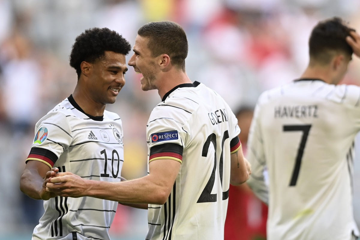 Ο Ρόμπιν Γκόζενς πανηγυρίζει με τον Γκνάμπρι γκολ της Γερμανίας κόντρα στην Πορτογαλία στο Euro 2020