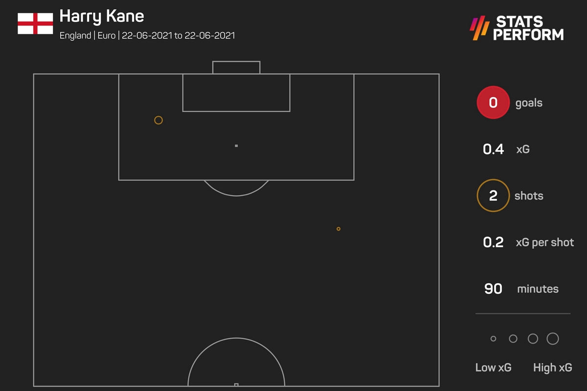 Το αρνητικό για τον Σάουθγκεϊτ είναι πως ο Χάρι Κέιν δείχνει αγνώριστος, βαρύς και ανίκανος -μέχρι στιγμής- να κάνει αισθητή την παρουσία του στα αντίπαλα καρέ. Σε 90 λεπτά συμμετοχής απέναντι στους Τσέχους, ο 27χρονος φορ είχε μόλις δύο τελικές, που είχαν ως “αξία” 0.4 xGoals.