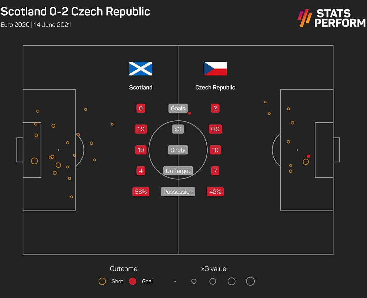 Σύμφωνα με το σχετικό γράφημα της Opta / Stats Perform, η Σκωτία έφτασε τα 1.9 xGoals και τελικά δεν πήρε ούτε την ισοπαλία.