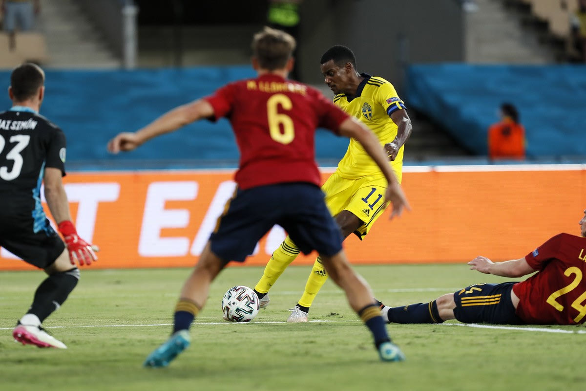 Η Σουηδία είχε τεράστια ευκαιρία να προηγηθεί απέναντι στην Ισπανία όταν ο Αλεξάντερ Ίσακ βρέθηκε τετ απέναντι στον Σιμόν, με το σουτ του να σταματάει στο αριστερό δοκάρι της εστίας της φούρια ρόχα.