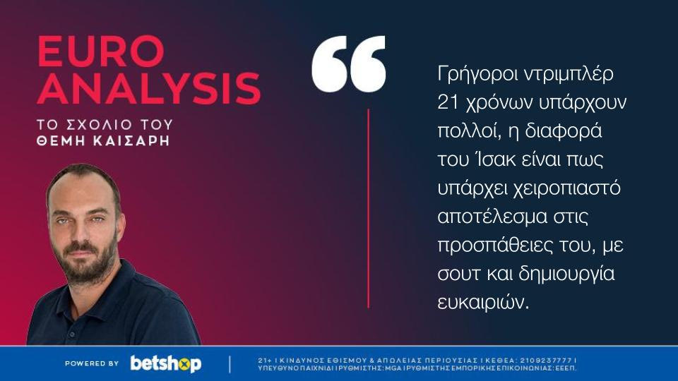 Ο Ίσακ τελείωσε τον αγώνα με έξι πετυχημένες ντρίμπλες, τις περισσότερες που έχει κάνει παίκτης στο Euro μέχρι στιγμής.