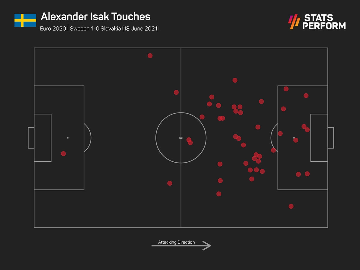 Δείτε τις ντρίμπλες του Ίσακ στο σχετικό γράφημα της Opta / Stats Perform, που συνεργάζεται με το SPORT24 για την ανάλυση του Euro 2020.