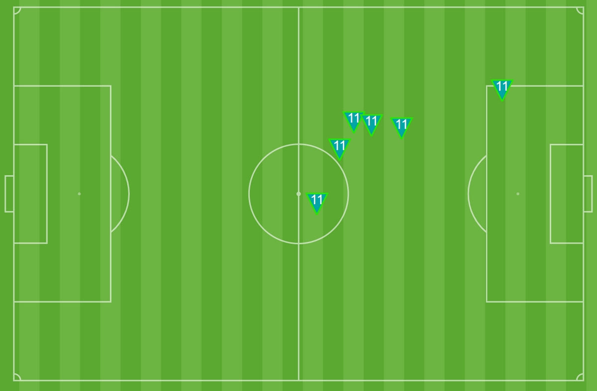 Εδώ φαίνονται πολλά. Ο 21χρονος παίζει στο δίδυμο της επίθεσης, αλλά μπορεί στο ίδιο ματς να έχει τόση συμμετοχή στο χώρο του κέντρο και ταυτόχρονα εννιά ενέργειες με την μπάλα στην αντίπαλη περιοχή.