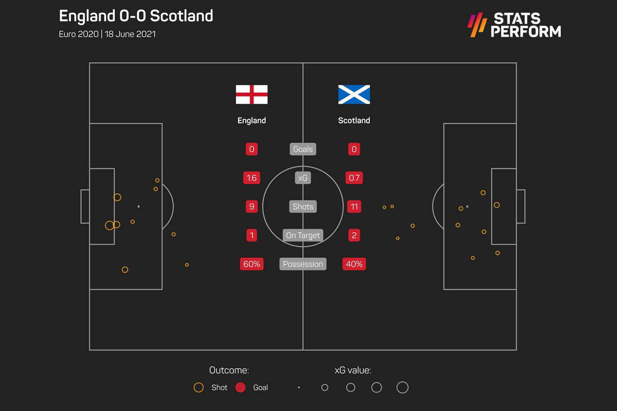Η Αγγλία δεν κατάφερε να βρει λύσεις απέναντι στην εξαιρετική οργανωμένη άμυνα της Σκωτίας, με τον Χάρι Κέιν να έχει ανύπαρκτη συμμετοχή στον αγώνα, καθώς έπεσε πάνω σε... τείχος.