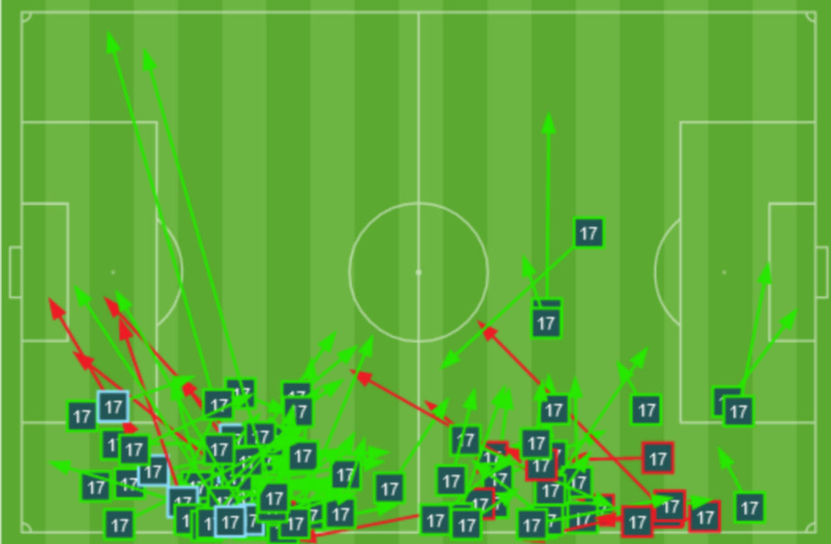 Στα 120 λεπτά που διήρκεσε η αναμέτρηση ο 24χρονος “μέτρησε” συνολικά 118 επαφές με την μπάλα. Αριθμός μεγάλος πόσο μάλλον για ποδοσφαιριστή που αγωνίζεται στα άκρα, αλλά που δικαιολογείται εν μέρει λόγω του έξτρα μισάωρου της παράτασης.