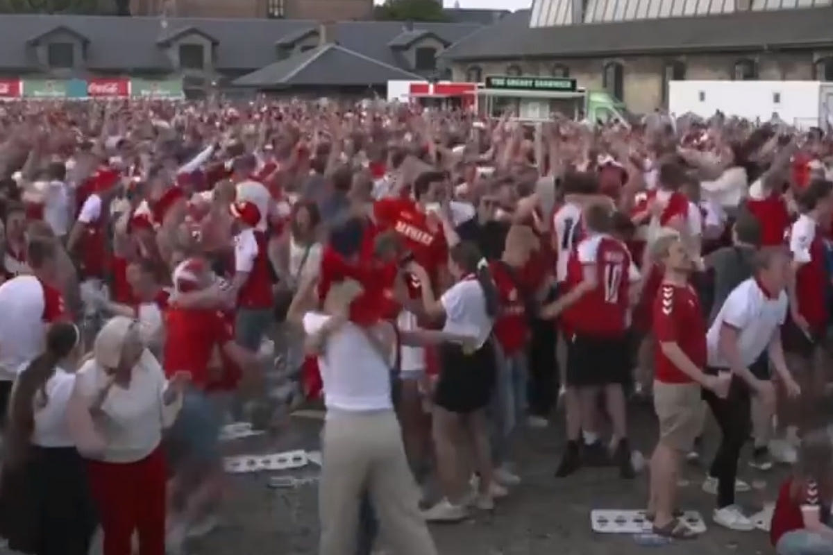 Οι Δανοί φίλαθλοι που παρακολούθησαν τον αγώνα σε κεντρική πλατεία της Κοπεγχάγης, πανηγύρισαν έξαλλα τα δύο γκολ κόντρα στην Τσέχια, τα οποία χάρισαν την πρόκριση στην ομάδα του Κάσπερ Χιούλμαντ στα ημιτελικά του Euro 2020.