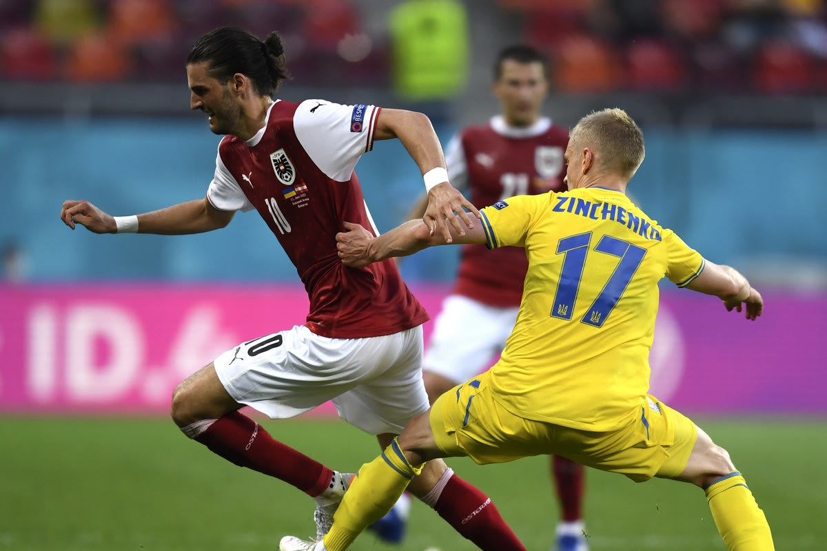 Στιγμιότυπο από την αναμέτρηση Ουκρανία - Αυστρία για την τελική φάση του Euro 2020