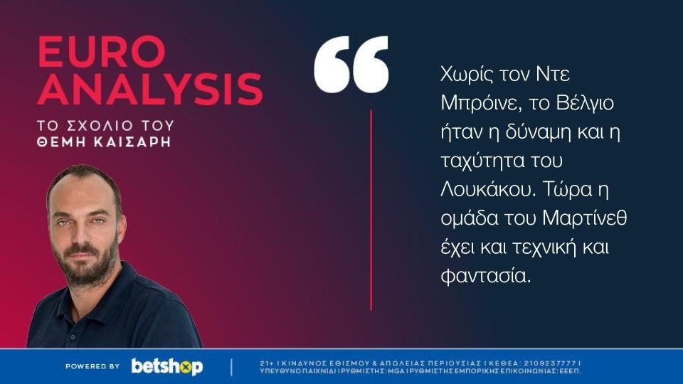 Το Βέλγιο θα είναι στη φάση των νοκ-άουτ, έχει θέματα να λύσει αν θέλει να φτάσει πιο ψηλά κι εμείς θα πρέπει να ελπίζουμε να το κάνει. Για να δούμε περισσότερο στο χορτάρι τον Ντε Μπρόινε.