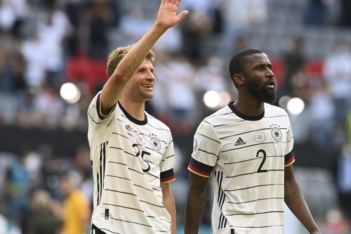 Ο Τόμας Μίλερ με τον Αντόνιο Ρίντιγκερ πανηγυρίζουν τη νίκη της Γερμανίας επί της Πορτογαλίας