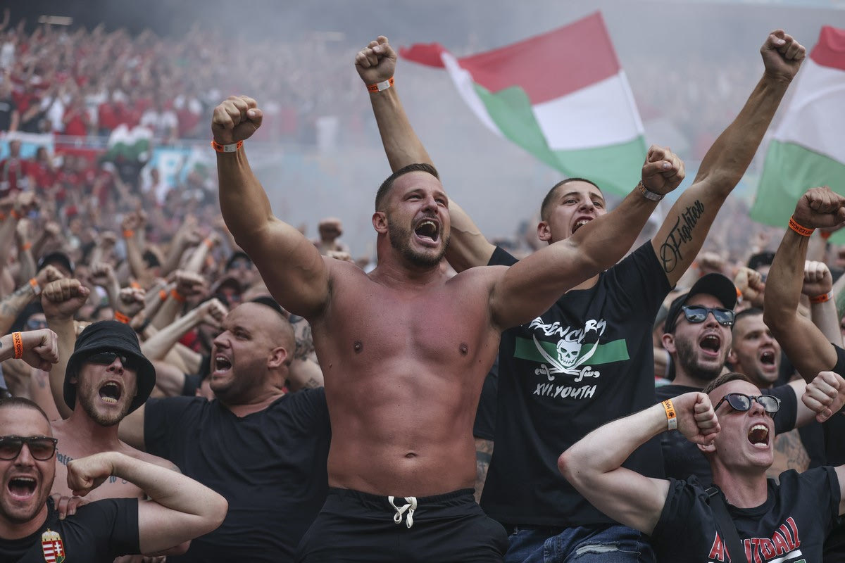 Οπαδοί της Ουγγαρίας πανηγυρίζουν το γκολ του Φιόλα στο ματς με την Γαλλία για το Euro 2020 @ 2021 Alex Pantling/AP Images