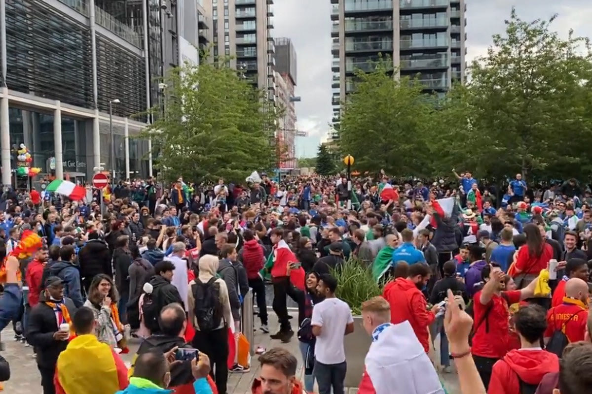 Το πάρτι των Ιταλών και Ισπανών φιλάθλων πριν από τον ημιτελικό των δύο ομάδων στο Euro 2020 κορυφώθηκε στους δρόμους του Λονδίνου, λίγες ώρες πριν από την σέντρα του αγώνα.