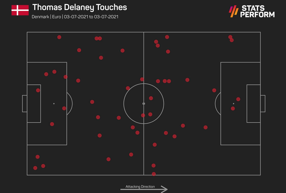 Μεγάλος πρωταγωνιστής για τους Δανούς ο Τόμας Ντιλέινι, ο οποίος πραγματοποίησε ένα εξαιρετικό παιχνίδι σε άμυνα και επίθεση. Ο 29χρονος χαφ άνοιξε το σκορ με όμορφη κεφαλιά, ενώ είχε κι άλλη μία πολύ καλή ευκαιρία να διπλασιάσει τα γκολ για την ομάδα του.