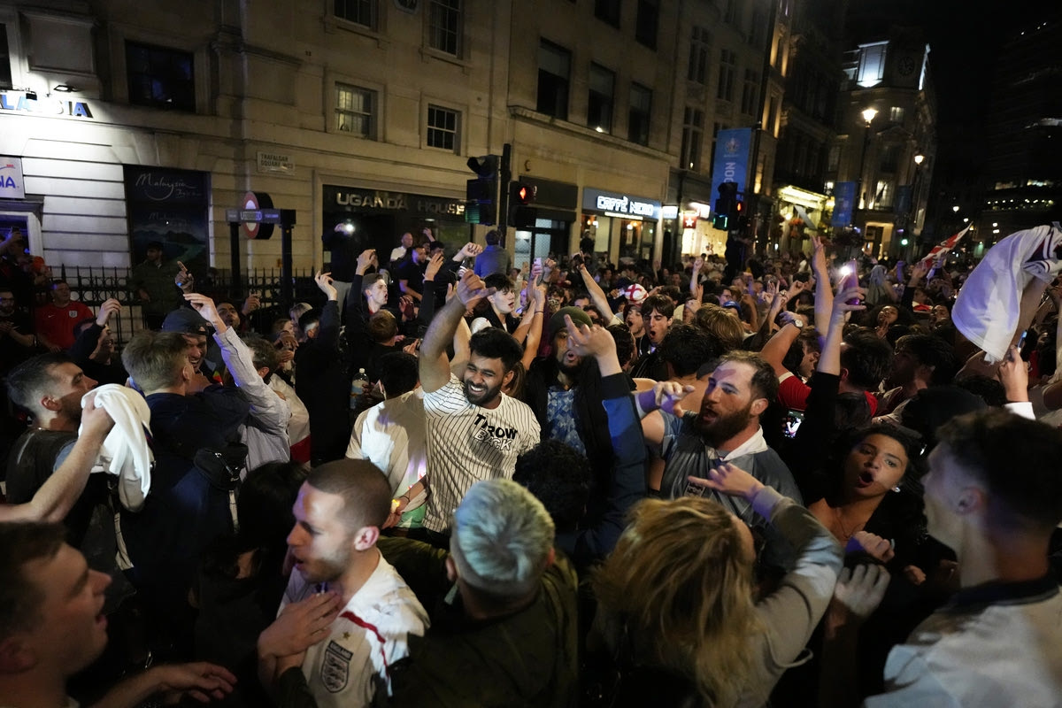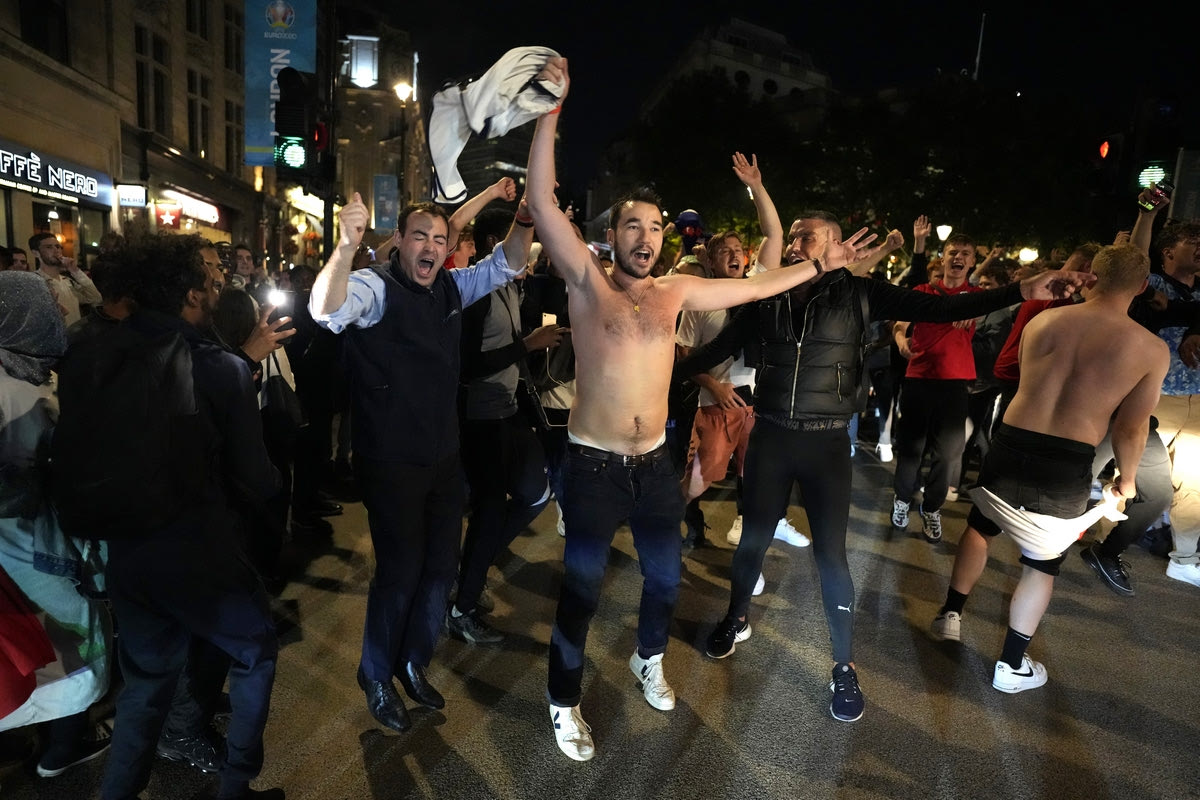 Οι Άγγλοι πανηγύρισαν έξαλλα τα γκολ της ομάδας τους κόντρα στη Δανία, ενώ μετά τη λήξη της αναμέτρησης ξεχύθηκαν στους δρόμους του Λονδίνου και άλλων πόλεων για να γιορτάσουν την πρόκριση στον τελικό του Euro 2020.