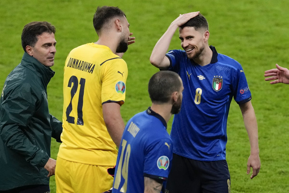 Ο Ζορζίνιο πανηγυρίζει τη νίκη της Ιταλίας Photo Credits: @ 2021 Matt Dunham / AP IMAGES