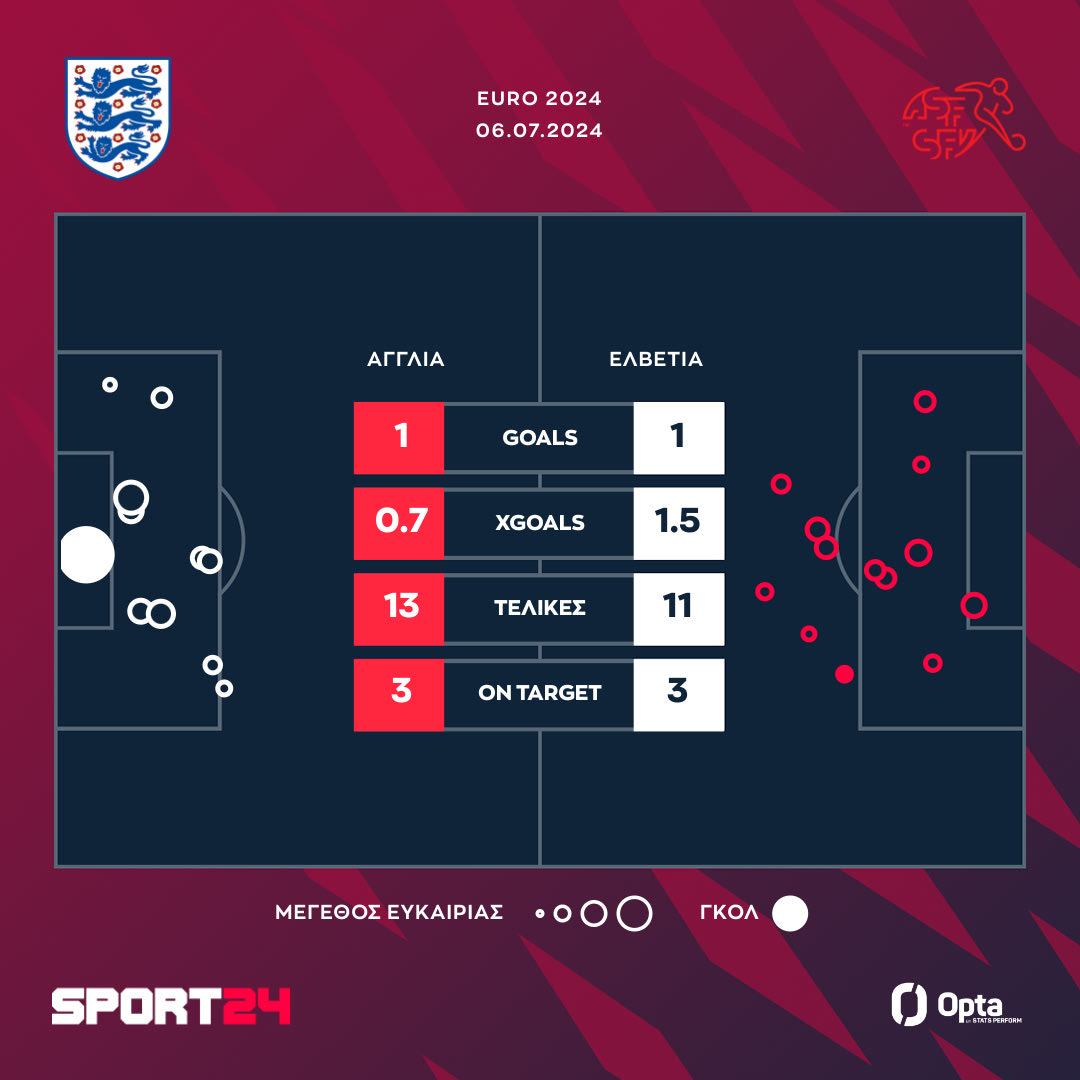 Οι τελικές και τα xGoals στο Αγγλία - Ελβετία